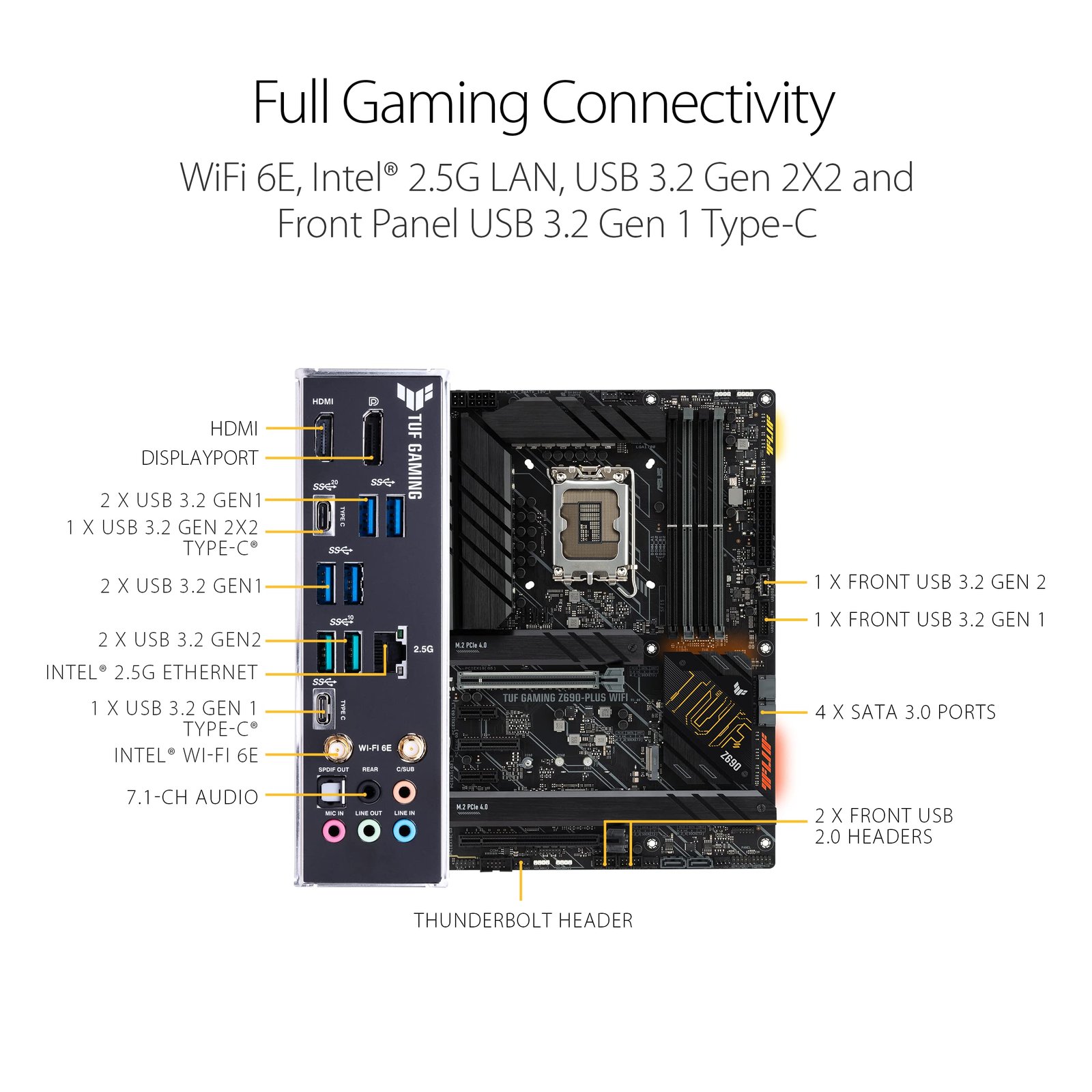 • Ultra Fast Gaming Networking : WiFi 6 AX201 (802.11 ax), Intel I225-V 2.5Gb LAN, TUF LANGuard and TurboLAN technology