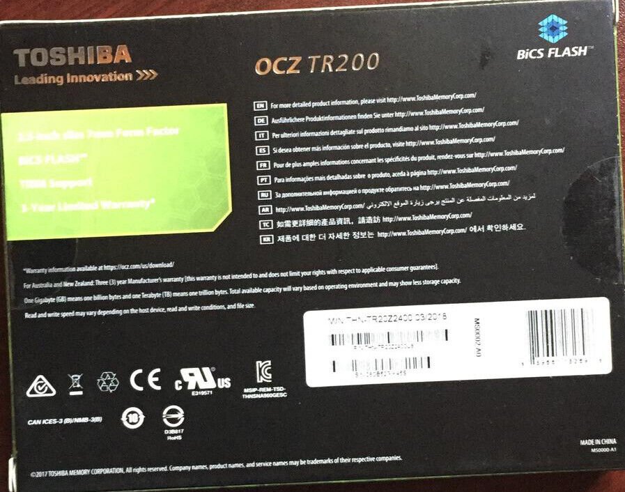 Toshiba OCZ TR200 SSD 240GB SATA 2.5″ Internal Solid State Drive THN-TR20Z2400U8. Condition is New. Shipped with USPS First Class Package.